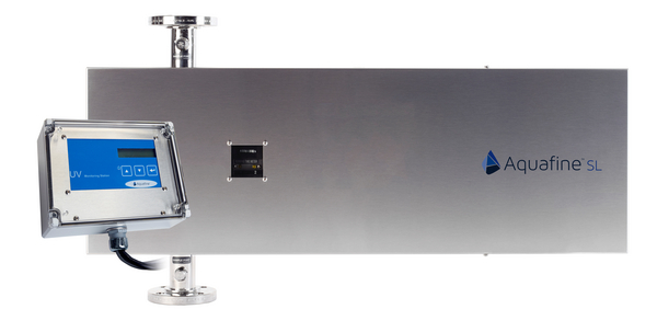 The SL-1 and MP-2-SL models can be configured for TOC reduction or ozone destruction applications. The Aquafine Corporation SL Series consists of a 316L stainless steel treatment chamber and a 304 stainless steel control panel in one integral unit. All units come complete with a standard Running Time Meter.-